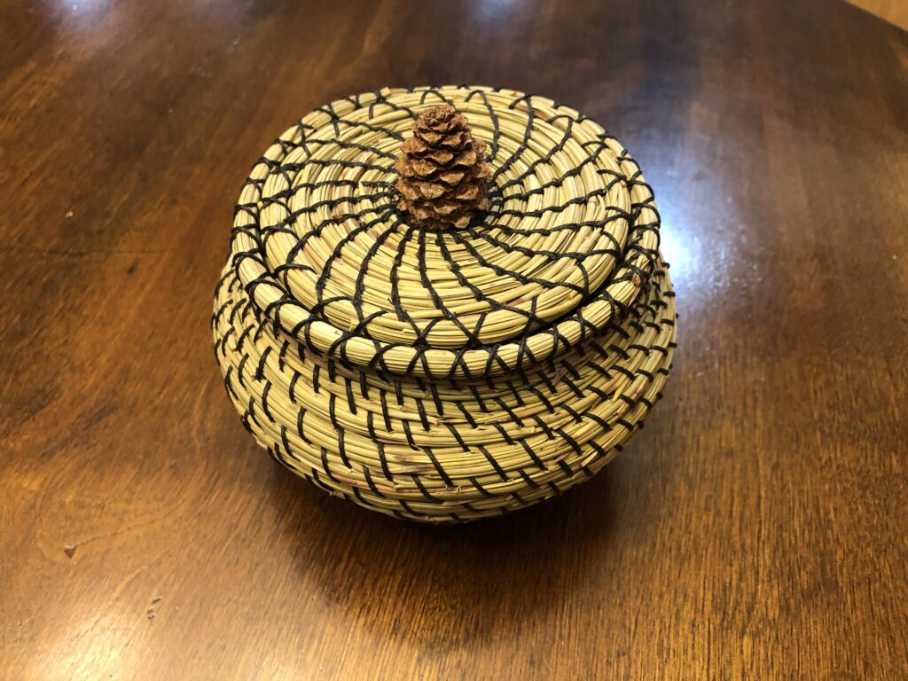 Pine needle baskets made with Ponderosa pine needles and cone found on ground